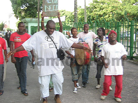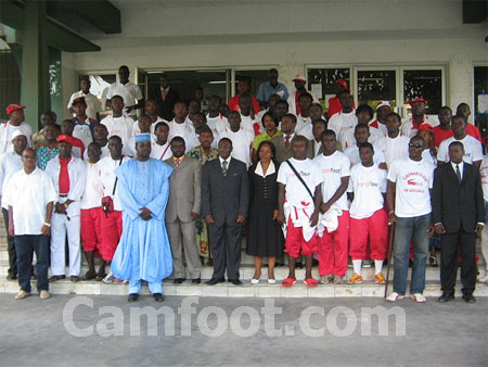 De l’autre côté, l’encadrement administratif net technique du club. Viennent ensuite les joueurs et les fans qui sont débout, acclamant à tout au moindre discours qui encence le club. L’inévitable Ngando Picket, la mascotte des Lions indomptables, bien connu des amoureux du ballon rond, et son orchestre se chargeaient de créer l’ambiance. On notait aussi la présence du patriarche André Ngangué.