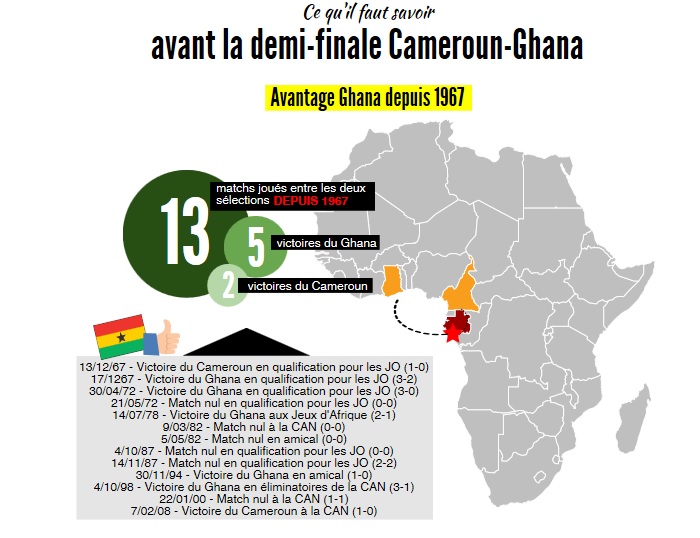 #CMRGHA – Fabrice Ondoa, le gardien des Lions Indomptabls va-t-il une nouvelle fois déjouer les statistiques ? Dans son édition de ce jeudi 02 février, Jeune Afrique dresse un tableau récapitulatif des différentes rencontres entre le Cameroun et le Ghana. Une chose est certaine, les « Black Stars » ont l’avantage des statistiques.