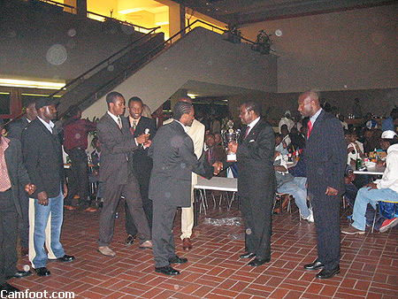 700 personnes ont déjà pris place dans l’immense restaurant universitaire le la TU Berlin parmi les quelles des joueurs professionnels comme Joël Tchami du Hertha Bsc de Berlin, les sponsors, les VIP et le représentant de Camfoot entre autres. La musique tarde à se faire vraiment entendre et ce n’est qu’à 2 heures du matin que l’Ambassadeur du Cameroun s’est pointé, à la tête d’une délégation de 5 personnes. Les choses sérieuses allaient donc commencées avec la série de discours protocolaire et la remise des récompenses et différents trophées qui a précédé la minute de silence à la mémoire de Foe et de toutes les gloires du football aujourd’hui disparue.