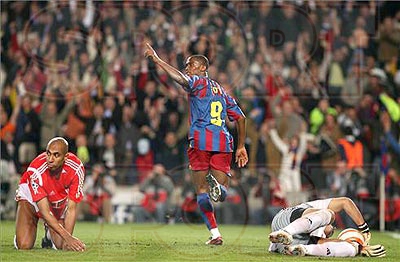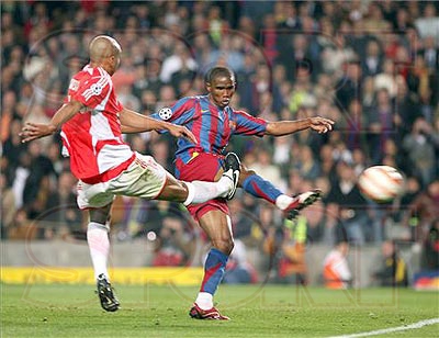 Prenant à contre-pied certains qui doutaient de lui, Eto’o tient à marquer les esprits. Très inspiré, le goléador est intenable. Permutant régulièrement sa place avec son coéquipier Ronaldinho. A la 19′, l’artificier des Lions indomptables fait un festival de dribble sur le flanc droit, exécute un parfait centre en retrait sur les pieds de Ronaldinho qui pousse le ballon au filet. C’est le 7è but en champions league du Brésilien. 1-0 pour le Barça. « Voilà Eto’o qui est passeur décisif, cet enfant sera ballon or européen cette année », commente un téléspectateur.