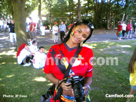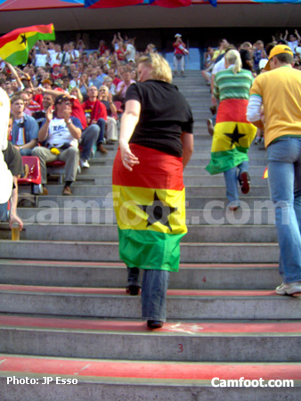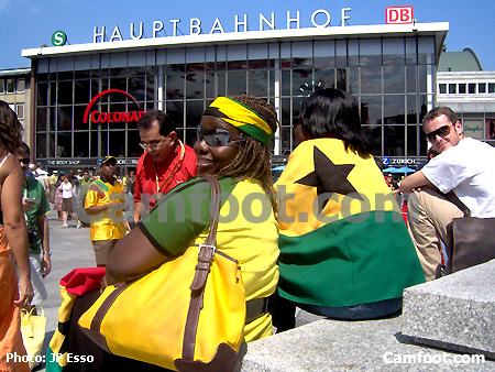Des Angolaises confiantes le 11 juin dernier, devant la Cathédrale de CologneUne famille angolaise venue de SuisseMonsieur est angolais, Madame est allemande…Devant la gare centrale, des ghanéennes prennent l’air…L’Allemagne supporte le TogoMaman Togo attend les français de pied ferme, ce soir…