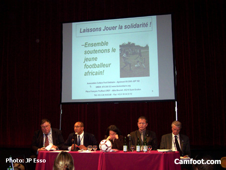 A Enghien les Bains, jeudi 2 novembre, de nombreuses personnalités s’étaient donné rendez-vous au Casino théatre de la ville à l’invitation du dynamique Jean-Claude Mbvoumin. Le camerounais se bat depuis des années pour aider les jeunes footballeurs qui arrivent en Europe sans repères ni informations sur ce qui les attend, quelques fois bien « aidés » par certains agents plus ou moins recommendables. Des institutions comme l’Uefa, l’UCPF (Union des Clubs Professionnels), des anciens joueurs comme Salif Keita, premier Ballon d’Or africain ou Nordine Kourichi ont intervenu sur la scène du théatre pour mettre le doigt sur le problème, mais surtout, pour proposer quelques solutions pouvant arranger tout le monde: les jeunes africains et leurs familles, et aussi les institutions et clubs européens.
