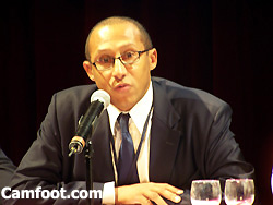 Je suis venu à la conférence dire mon mécontentement du comment est géré le futur des jeunes joueurs africains, je suis là pour aider CFS, pour éviter les drames que l’on constate à l’heure actuelle. J’ai donné l’exemple de Roger Milla avec un contrat de 3 ans, et un appartement, une voiture qui l’attendaient à Valenciennes.