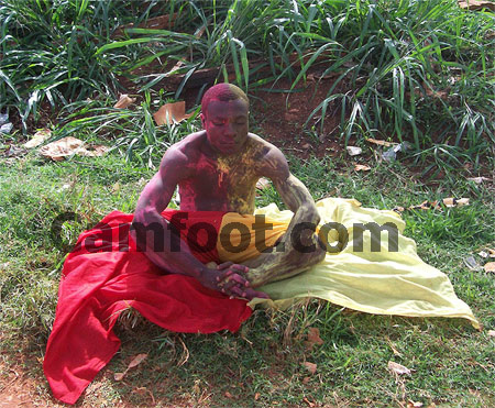 La mascotte de Lion Ngoma enlève sa tenue peu avant le début du match.