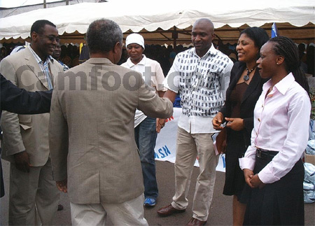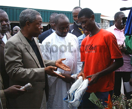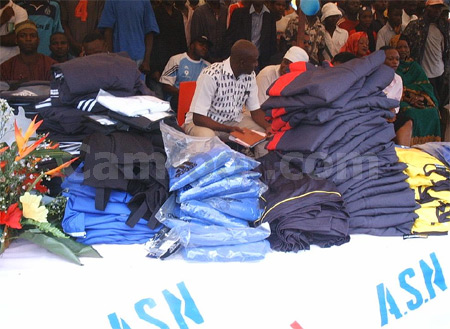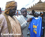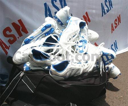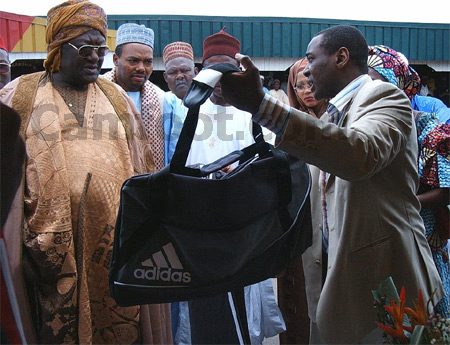 Les autres équipements évalués à 1600 euros et constitués de 15 maillots Climacool (bleu), 15 shorts (bleu), 15 paires de bas (bleu), 2 paires de gants, 1 maillot de gardien de but, 1 paire de chaussettes gardien de buts (blanc), et 5 ballons ont été remis à Espérance de Foumbot, l’équipe locale de deuxième division et aux organisateurs de tournoi de vacances dans le Noun. L’entraîneur Jean Claude Yerima a personnellement reçu un don de survêtement et de tennis pour l’action d’encadrement des jeunes footballeurs qu’il mène dans le département depuis longtemps. En présentant les maillots au préfet du Noun et au sultan roi des Bamoun, Ibrahim Mbombo Njoya, le président a laissé entendre que ces jeux de maillots sont les mêmes que l’équipementier Adidas fabrique pour la star du football, David Beckam.