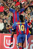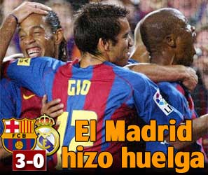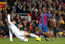 Ce but, son dixième cette saison en 12 matchs, est un véritable chef d’œuvre artistique, digne des plus grands exploits du Roi Pelé. Ayant observé la trajectoire asymptotique d’une balle broussée et anodine de Ronaldhino depuis la ligne médiane, malheureusement vers Roberto Carlos, retranché en dernier défenseur dans la moitié de terrain madrilène, Eto’o Fils, légèrement excentré sur le flanc droit, suit l’action à distance et poursuit sa course. Roberto Carlos laisse filer la balle vers son gardien de but à qui il fait signe de la main de venir à sa rencontre. Quand Iker Casillas s’apprête à ramasser la balle, à la limite des 18 mètres, Samuel Eto’o Fils jaillit dans le dos de Roberto Carlos. Il s’engouffre dans le trou noir créé entre les deux madrilènes, s’empare du ballon et s’en va le pousser au fond des filets avec une maîtrise qui lui a souvent fait défaut, devant un Nou Camp en délire.