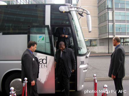 La Fifpro a ensuite procédé à l’élection de son comité éxécutif, dont les membres sont en place pour une durée de quatre ans. Le nouveau comité de 8 membres se compose des représentants des cinq pays fondateurs du syndicat international le 15 décembre 1965 à Paris. Il s’agit de Mick McGuire pour l’Angleterre, Philippe Piat pour la France, Gerardo Movilla pour l’Espagne, Leonardo Grosso pour l’Italie et Louis Evrard pour les Pays-Bas. Les trois autres sont Fran Gavin (Irlande) pour l’Europe, Jorge Dominguez (Argentine) pour les Amériques et David Mayébi (Cameroun) pour l’Afrique. Il s’agit d’une première puisqu’en 40 ans d’existence, ce syndicat n’avait jamais élu dans son comité directeur un représentant africain.