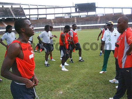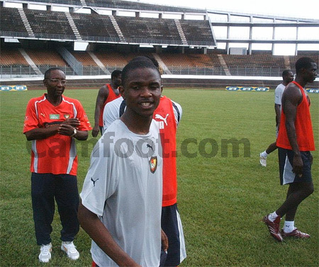 Au cours de la seconde partie du programme de ce 15 Juin 2006, devant la centaine de spectateurs présents dans la cuvette de Mfandena, bénéficiant du renfort du portier amateur du Canon de Yaoundé, Bina, venu palier à l’indisponibilité de Jocelyn Mayebi, l’encadrement technique divise le groupe des 21 en deux camps pour un petit match d’exhibition.