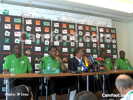 Arrivés vers 11H45 à leur hôtel de la ville nordiste d’Hambourg, les Éléphants, Didier Drogba en tête, n’ont pas perdu de temps. Une conférence de presse organisée quelques minutes après, avec le sélectionneur Henri Michel, et les joueurs Dindané, Eboué et Yaya Touré a tourné à un one man show pour le sociétaire de Chelsea. Les nombreux journalistes présents n’avaient de question que pour lui, comme depuis l’arrivée de l’équipe en Allemagne, lundi dernier.