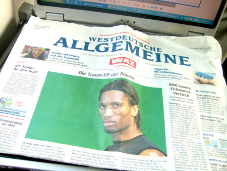 Depuis que le groupe a rejoint l’Allemagne et son camp de base de Niederkassel, près de Cologne, il y a beaucoup d’intérêt pour Drogba au pays de Miroslav Klose: une élection par les lectrices du Westdeutsche Allgemeine dans le onze des « plus beaux joueurs du Mondial », en compagnie notamment de Beckham, Figo et Ballack bien sûr. Des demandes d’interviews télé et radio, de « chats » internet pullulent, mais le staff administratif ivoirien veille à protéger sa star, pour qu’elle soit concentrée au match contre l’Argentine.