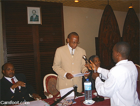 Suspendu le 23 avril dernier par le secrétaire général de la présidence de la république, Jean Marie Atangana Mebara pour cause de texte non conforme et surtout après l’affaire du retrait des six points par la Fifa, le processus électoral a donc repris après dix mois là où il s’était arrêté avec la convocation des membres de l’assemblée générale en vue de l’élection du président et des autres membres du bureau directeur. Prévu pour 9 h c’est finalement à 11 h que les travaux démarrent à l’hôtel Mont Fébé de Yaoundé lieu des assises. C’est Daniel Nomo Menyé, le représentant du ministre des sports et de l’éducation physique qui a ouvert les travaux. Dans son discours d’ouverture, l’inspecteur général au ministère des sports a souhaité que les travaux se déroulent dans la sportivité et le fair-play. Il a également souhaité que les élections se passent selon les textes de la Fécafoot.