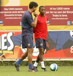 On spéculait sur la possibilité ou non pour Rijkaard d’emmener Eto’o à Valence pour le récompenser de l’intensité avec laquelle il s’est entrainé pendant la semaine. Finalement, ce sont Gudjohnsen et Saviola ont été choisis pour se rendre à Mestalla.