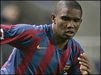 Eto’o, who has been Africa’s top player in the last three seasons and was nominated for this year’s award, has scored 68 goals for Barcelona since arriving from Mallorca in 2004.