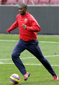 Malgré le fait que ses coéquipiers ont fêté leur victoire devant Alavés (3-0 avec un triplé de Saviola) en Coupe du Roi, Samuel Eto’o a continué à travailler au cours d’une session qui était la première durant laquelle les médias pouvaient prendre quelques images du camerounais en action. À son troisième jour d’entraînement, le ‘9’ du FC Barcelone fait quelques courses au Camp Nou en plus de réaliser un certain nombre d’exercice avec la balle.