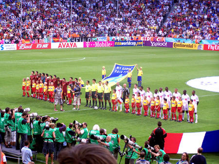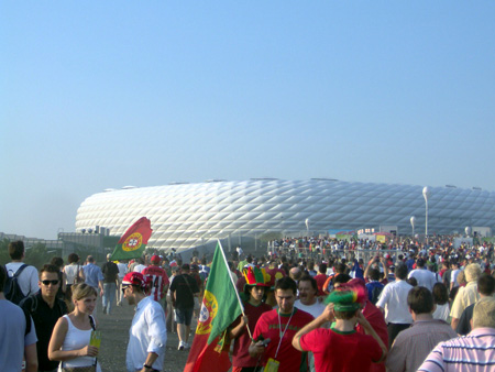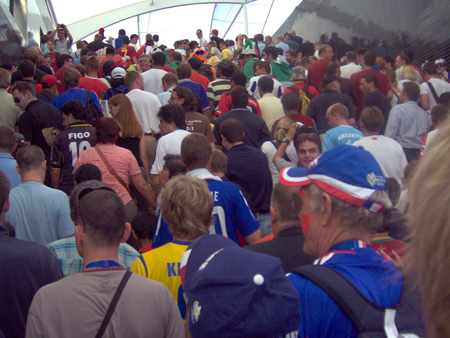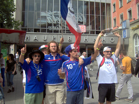 La demi-finale France-Portugal de Munich qui s’est achevée par la victoire des Bleus sur un pénalty de Zinédine Zidane (1-0) n’a pas forcément tenu toutes ses promesses côté football. Le spectacle était semble-t-il ailleurs, en ville avant le match et dans les tribunes du Fifa World Cup Stadion…