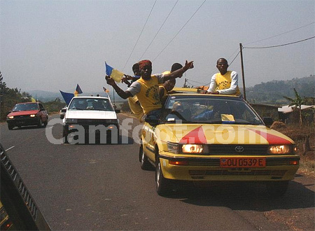 A 11 heures, l’on reprend la route. Les villages Maigon, puis Baïgon sont traversés. S’ouvre alors la ville de Foumbot. Ici, l’on constate que la mobilisation est forte. Vieillards, mamans, jeunes, enfants se ruent sur le cortège. D’aucuns scandent les noms des joueurs, leurs stars. D’autres veulent absolument les toucher. Bain de foule populaire. « Il est l’heure! » saluent-ils. L’escale dure plus que prévu.