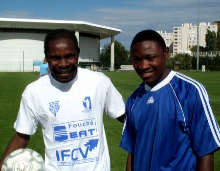 Paul Alo'o Efoulou (à droite), le buteur de L' Entente Sannois Saint Gratien(National, France)