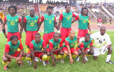 Cameroun: 16-Tignyemb, 3-Essola, 17-Ndjoumeck, 4-Ndzana, 6-Matoukou, 12-Angbwa, 11-Abada (cap), 13-Job Iyock (puis Ngal 80è), 8-Mokake (puis Ambane 87è), 15- Ze Francis, 10-Wansi (puis Webo 65è).