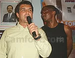 « Venir au Cameroun pour moi, c’est mieux que gagner la champions League parce que c’est un moment historique pour le Fc Barcelone de fouler le sol du Cameroun grâce à notre joueur Samuel Eto’o », a ainsi déclaré le président du club Catalan Joan Laporta. Comme un rêve, la présence du président du club Espagnol au Cameroun a été une belle réalité pour les milliers de jeunes de la ville de Douala, habitués à le voir sur leur petit écran. Ce passage dans la capitale économique de Joan Laporta pour présider la finale du tournoi « Festi Espoir Eto’o », a été précédé de la rencontre entre le dirigeant du club Espagnol et le ministre des sports et de l’Éducation physique, Philipe Mbarga Mboa, dimanche dernier à Yaoundé. Joan Laporta est venu au Cameroun pour la concrétisation des projets socio-éducatifs qui veront le jour au Cameroun. Il s’agit de l’ouverture d’une Academy de Football par le Fc Barcelone ayant pour objectif de permettre aux jeunes défavorisés de trouver un cadre adéquat pour une éducation sociale à travers le sport. Ce projet sera développé par la Fondation Embele de Xavier Sala Martin.