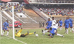 Les Congolais iront à la pause avec l’avance d’un but inscrit par Nseke Sasa, à la 44ème, à la suite d’un mauvais renvoie du gardien Amour Patrick Tignyemb.