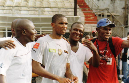 A huge crowd spend hours outside the team’s hotel just to get a glimpse at the players especially Eto’o as he receives an avalanche of gifts from passionate football lovers.