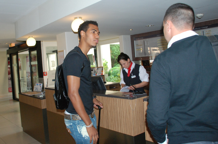 3. Aurelien Chedjou et Stéphane Bikey dans le hall de l'hôtel