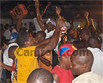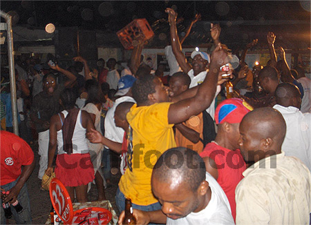 Les fans fous de joie une rue de Douala