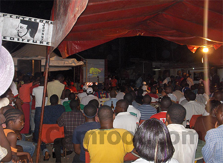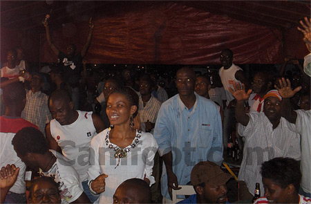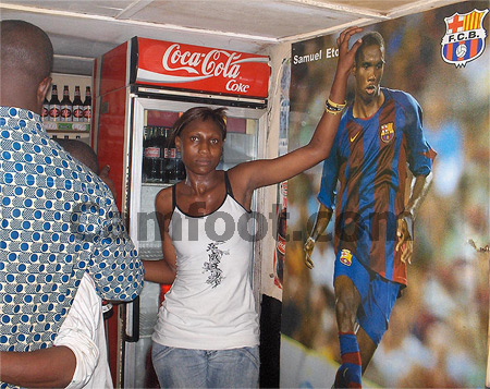 Un autre ‘’fou d’Eto’o » brandit une bouteille qui jaillit comme du champagne : « je bois la même bière qu’Eto’o ». Les baffles (hauts parleurs) géants distillent des sonorités locales à casser les tympans d’un sourd. La bière coule à flot. Les fêtards se marchent sur les pieds. Au rythme des musiques ‘’in » du pays. Une entreprise brassicole de la place, parrain de l’événement, lance des jeux-concours pour récompenser ses consommateurs. « 4 bouteilles de bière à 1000 frs pendant trois minutes [un temps finalement élastique qui a permis à presque tout le monde se ravitailler, Ndlr] » hurle M. Njapoum, directeur régional Littoral des ventes d’une société brassicole. Un tarif promotionnel (en temps normal, deux bières coûtent 1000 frs dans ces lieux) qui a créé un embouteillage devant le guichet du ‘’Parlement 9 ». Pourquoi avoir choisi cet endroit pour animer cette finale ? M. Njapoum, répond : « il fallait rentrer aux sources. C’est ici que Samuel Eto’o a commencé à taper dans le ballon ».