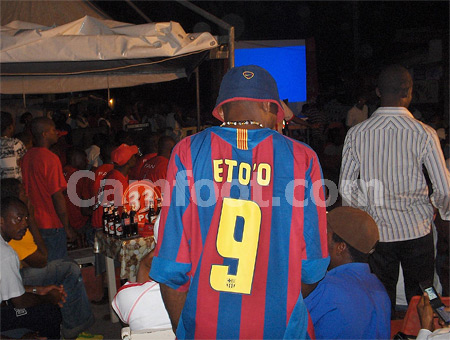 Avant le début de cette rencontre au sommet, le ‘’Parlement 9 », minuscule bar pittoresque de New Bell, a installé des chaises et des tables sous des tentes qui obstruent complètement l’artère de ce quartier populeux de Douala. Derrière un camion de l’entreprise brassicole, un écran géant diffuse déjà les images des joueurs qui entrent sur l’aire de jeu du Stade France. Les pronostics vont bon train. 2-0, 3-0, 3-1, chacun croit avoir déjà vu le match dans une calebasse divinatoire. Dès le coup d’envoi, chaque touche du ballon du ‘’Pichichi » (c’est ainsi qu’on appelle Eto’o ici) est applaudie.