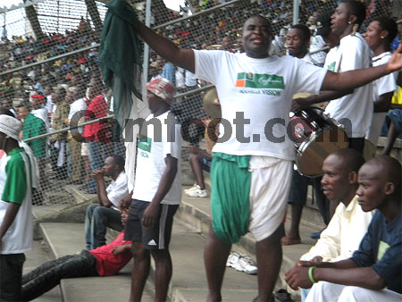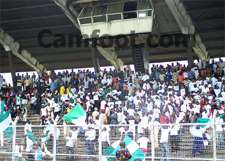 Ce sera sans compter avec l’arrivée par vagues des « Up Kwara » le fameux groupe d’animation des supporters nigérians déversés à l’entrée du stade de la réunification par trois bus de 50 places. On se croirait au stade Surulere de Lagos. Drapés dans des uniformes aux couleurs vert et blanc de leur équipe, tenant fermement des drapeaux de la République Fédérale du Nigérian, ils scandent à l’unisson : « Nous sommes venus gagner ici. Kwara United toujours vainqueur ». Les formalités d’entrée remplies, ces animateurs investissent l’aile droite de la tribune d’honneur et noient avec leurs sonorités le groupe de danse « Nzuguo Glenlary Fanfare » de l’Union Sportive de Douala qui avait auparavant pris place à cet endroit. Sous des sonorités connues de la chanteuse de musique gospel Agatha Moses, les supporters de l’équipe visiteuse vont enflammer le stade et détourner l’attention de quelques spectateurs de l’aire de jeu où les 22 acteurs recherchent l’équation du but dès le kick off donné par l‘arbitre sénégalais Diouf Abdou.