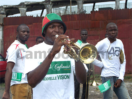 Sons de trompettes, fanfares et balafons rivalisent d’adresse et assomment les spectateurs venus assister à ce match entre l’équipe locale classée 3ème au championnat et les Nigérians de Kwara United. Pendant 5 minutes ils encensent les gradins et promettent un beau spectacle dans l’antre de Bépanda.