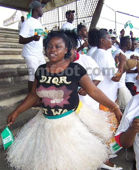 « Kamakaï, de l’avant », « Kamakaï, nous sommes derrière toi », ainsi le ton est donné d’entrée de jeu par les supporters réunis autour du groupe « Mazouego Fabiola Fanfare » de l’Union sportive de Douala. Habillés aux couleurs traditionnelles Vert et Blanc de l’Usd, ils ne jurent que par la victoire des poulains de Bonaventure Djonkep.