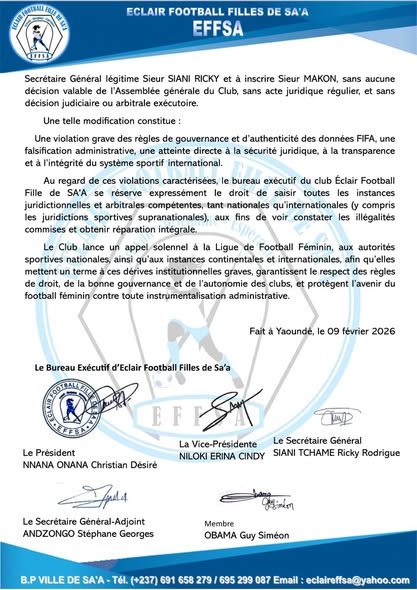 Eclair Filles de Sa’a, dommage collatéral de la guerre de Samuel Eto’o contre André Onana