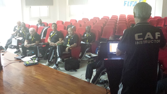 Depuis lundi, la Direction technique de la Confédération africaine de football (CAF) et des membres de sa Commission technique et développement, des représentants de la Confédération asiatique de football et de l’Union européenne de football association (Uefa) sont réunis au Centre d’excellence de Mbankomo avec des Directeurs techniques des Fédérations membres de la CAF. Leur mission, réfléchir à comment mettre sur pied un plan de formation des entraîneurs africains en vue de l’obtention de la Licence Pro. «Ce séminaire ici au Cameroun, consiste à travailler sur les prérequis que doivent avoir les entraîneurs pour prendre part à cette formation ; quels sont les contenus de la formation ; quelles sont les évaluations à faire pour obtenir une Licence Pro. On a envie de monter le niveau de formation et d’exigence que doivent avoir des entraîneurs diplômés», explique Nasser Larguet, Directeur technique national du Maroc, membre de la Commission technique et développement de la CAF.
