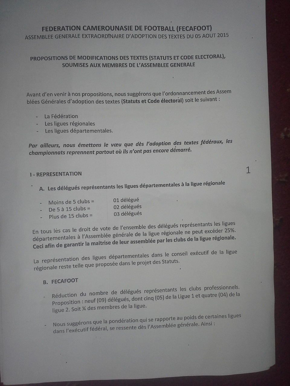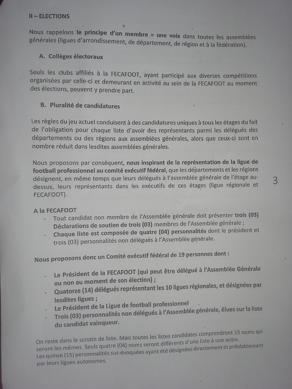 Ensuite la part belle a été faite aux différentes franges qui s’étripent autour de la fédération. Les représentants des clans Tombi, Alioum Alhadji, et même d’Emmanuel Loga, y ont porté leurs suggestions. Lesquelles ont été consignées dans un rapport de ces différentes rencontres et déposées sur la table du Comité de normalisation pour servir comme canevas au cour de l’AG et éviter des blocages dans le cours des travaux.