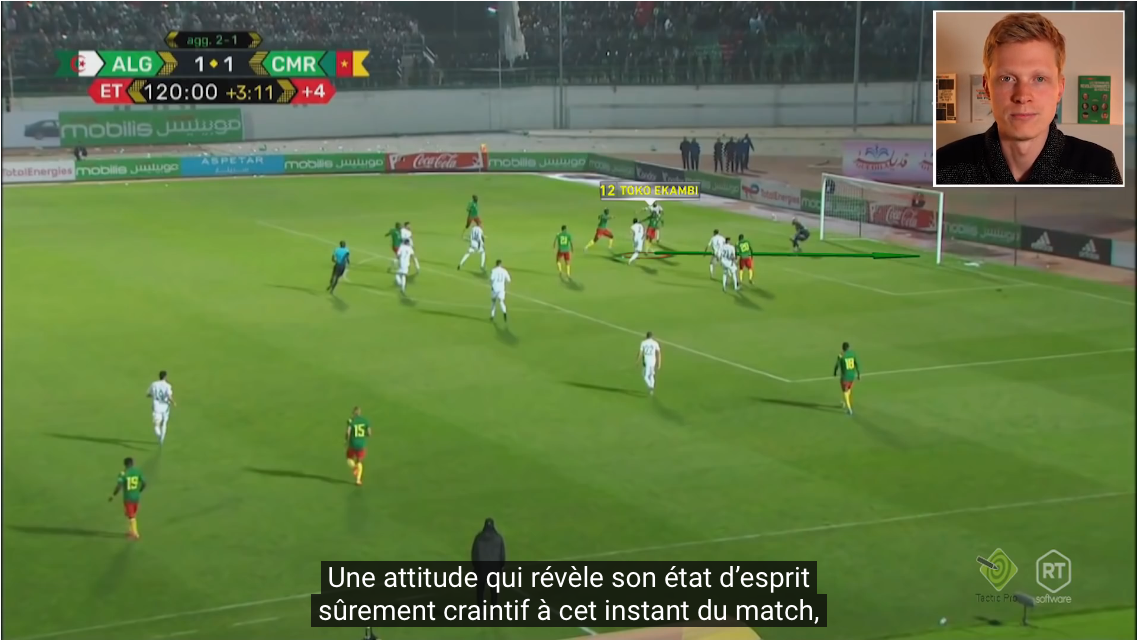 Le même Kundé Malong va traverser le terrain, se saisir d’une balle tout près des bancs de touche. Il va d’abord vouloir faire une longue touche et avec ses gros muscles, les Algériens reculent tous loin du ballon. La suite ? en vidéo…