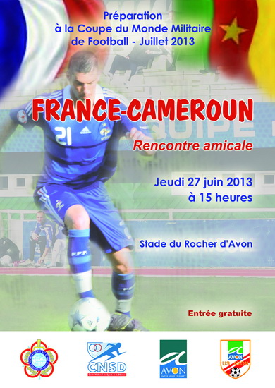 Dans le cadre de la préparation de la coupe du monde militaire de football qui aura lieu au mois de juillet 2013 à Baku (Azerbaïdjan), l’équipe nationale militaire du Cameroun militaire affronte l’équipe de France militaire lors d’un match amical ce jeudi 27 juin sur le stade du rocher d’Avon.