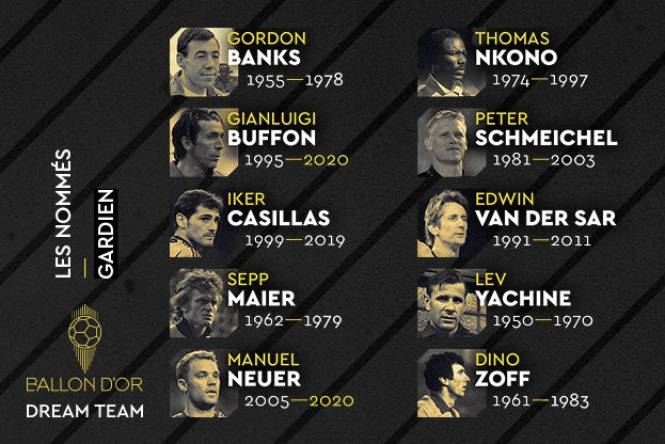 Alors que le Ballon d’Or ne sera pas décerné cette année, France Football a décidé de lancer un nouveau concept, « Dream Team », visant à élire le meilleur onze de l’histoire (depuis les années 1950), poste par poste. L’opération a débuté ce lundi, et l’hebdomadaire dévoilera en trois temps des listes de 10 nommés, par poste. Le vote reviendra aux habituels jurés du Ballon d’Or (environ 170 spécialistes dans le monde). Chez les gardiens de but, l’araignée noire, Thomas Nkono, est le seul gardien africain sélectionné parmi les dix nominés. Cette liste ne comporte que les plus grands.