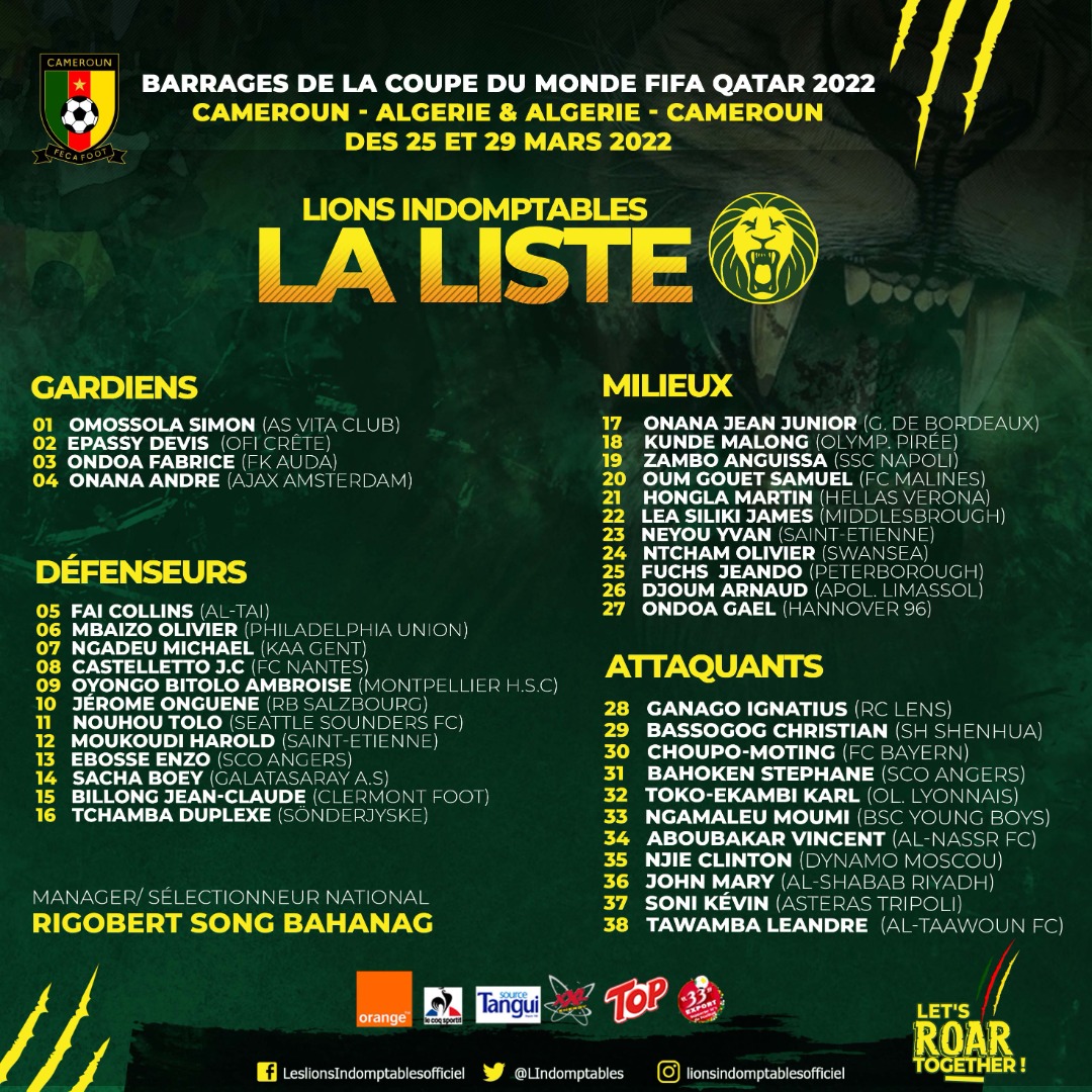 Le nouveau manager – sélectionneur du Cameroun Rigobert Song tient sa première liste de joueurs présélectionnés en vue des barrages de la Coupe du monde. Et c’est sans Joël Matip, ni Anthony Elanga, Hugo Eketiké et Youssoufa Moukoko.