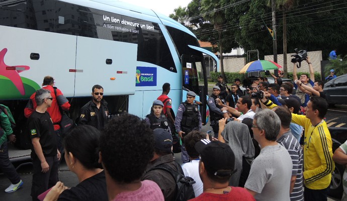 Une vingtaine de supporters étaient venus faire quelques photos de près avec les joueurs. Cependant, la tristesse était de mise et chacun se avait la tête baissée ou se cachait littéralement. Sauf Samuel Eto’o, qui a brièvement souri et fait un signe de tête.