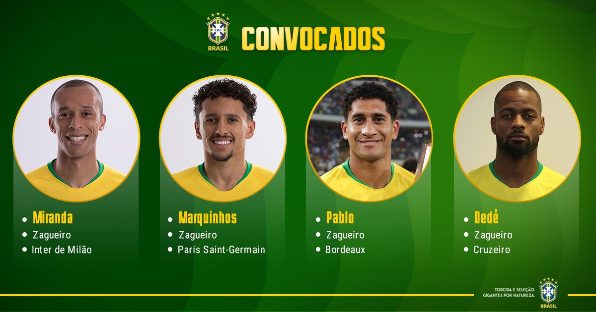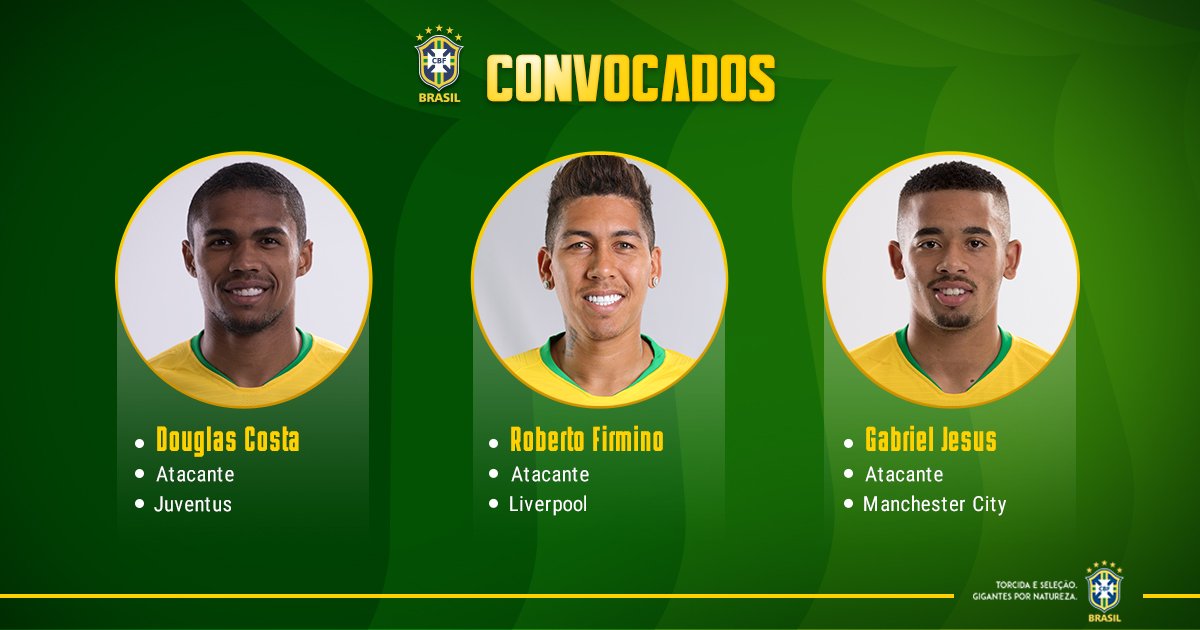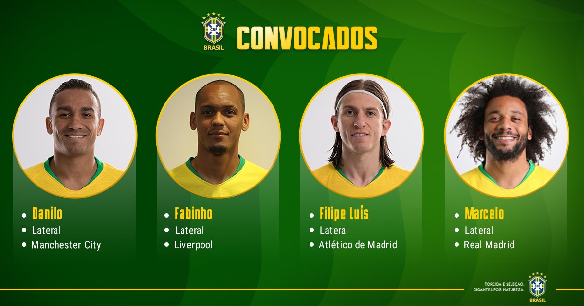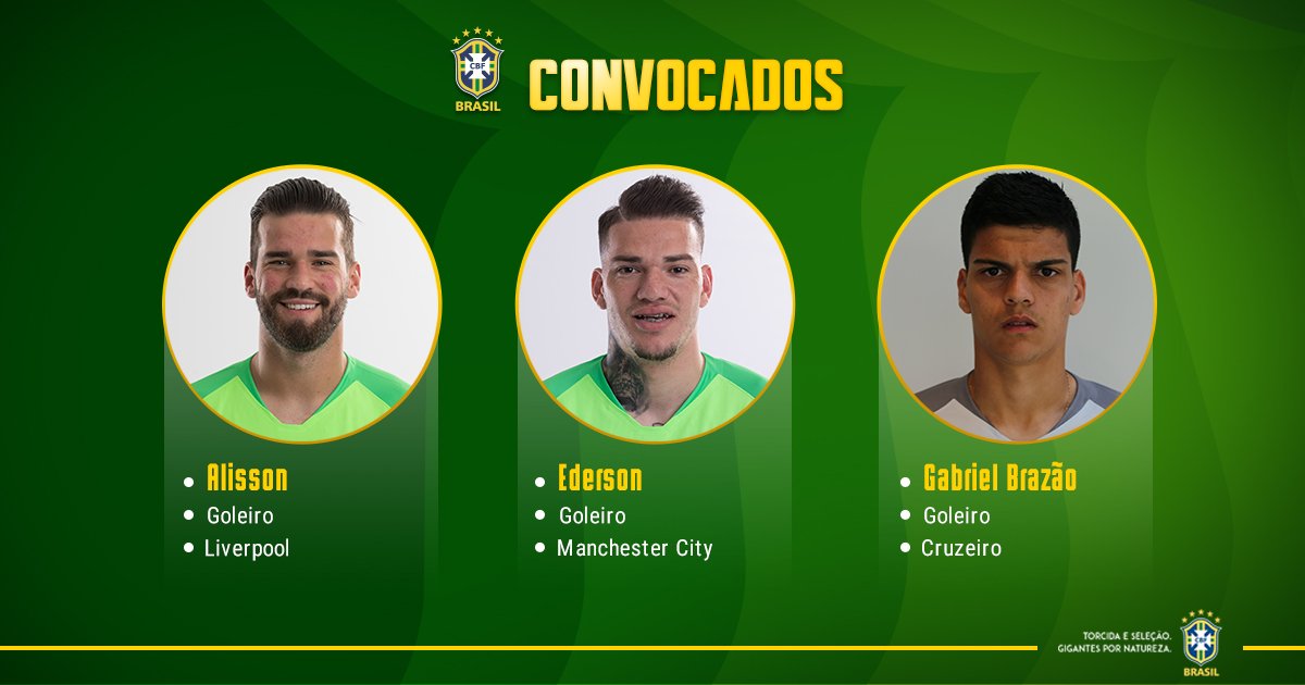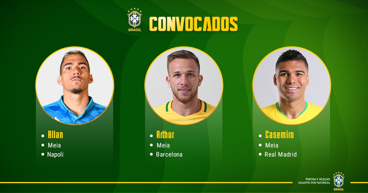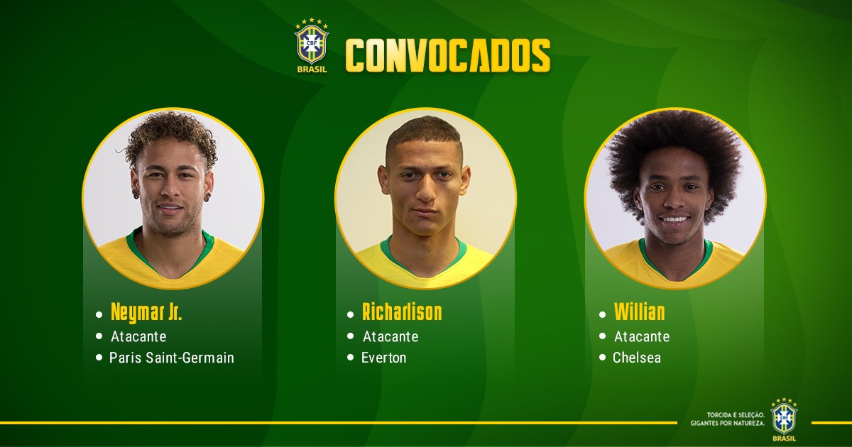 Alisson, Ederson, Gabriel Brazão, Danilo, Fabinho, Filipe Luis, Marcelo, Miranda, Marquinhos, Pablo, Dedé, Allan, Arthur, Casemiro, Paulihno, Coutinho, Walace, Douglas Costa, Roberto Firmino, Gabriel Jesus, Neymar, Richarlison, Willian.