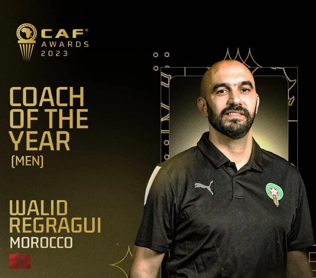 Le sélectionneur du Maroc, Walid Regragui, a été sacré meilleur entraîneur de l’année par la CAF pour le football masculin. Il a mené son pays à une demi-finale historique à la Coupe du Monde au Qatar.