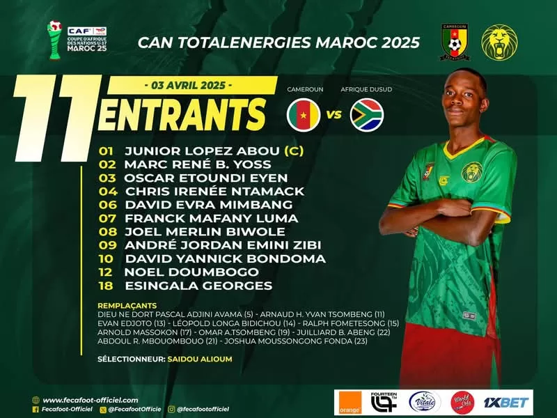 Le Cameroun affronte l’Afrique du Sud ce jeudi soir dans le cadre de la deuxième journée de la CAN 2025 face à l’Afrique du Sud. Après la défaite face au Burkina Faso, Saidou Alioum et ses poulains jouent gros ce soir au stade El Arbi Zaouli. En effet, les Lionceaux sont déjà sous pression. Il faut absolument s’imposer pour garder ses chances de franchir le premier tour.