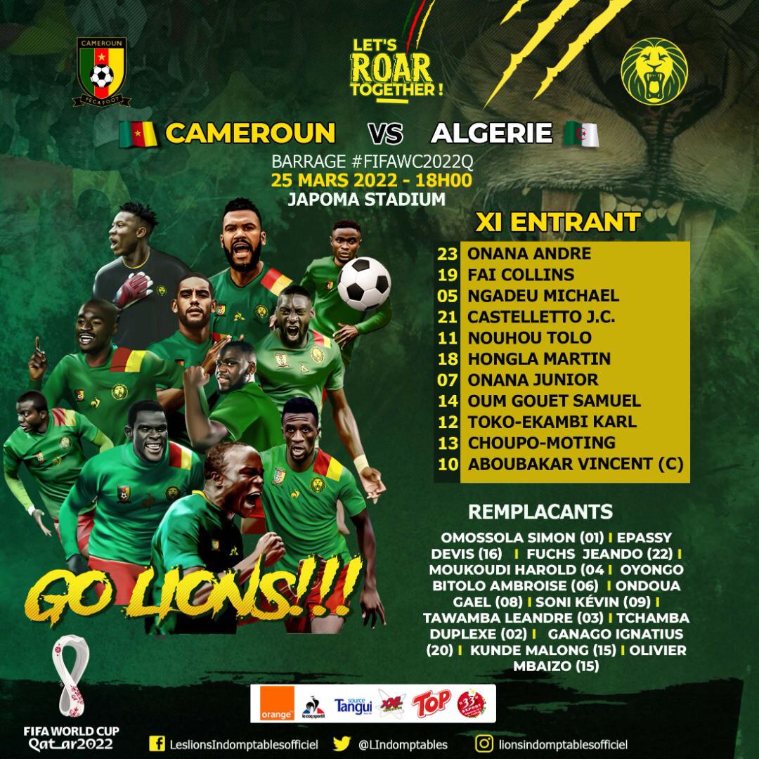 Rigobert Song, le sélectionneur national du Cameroun l’avait prédit. Il n’y aurait pas de changement notable dans le classement de départ des quintuple champions d’Afrique. Il a tenu parole. Deux changements seulement ont été apportés par rapport aux onze partants de la Coupe d’Afrique des Nations. Seuls les titulaire indisponibles ont été remplacés dans ce duel Cameroun – Algérie.