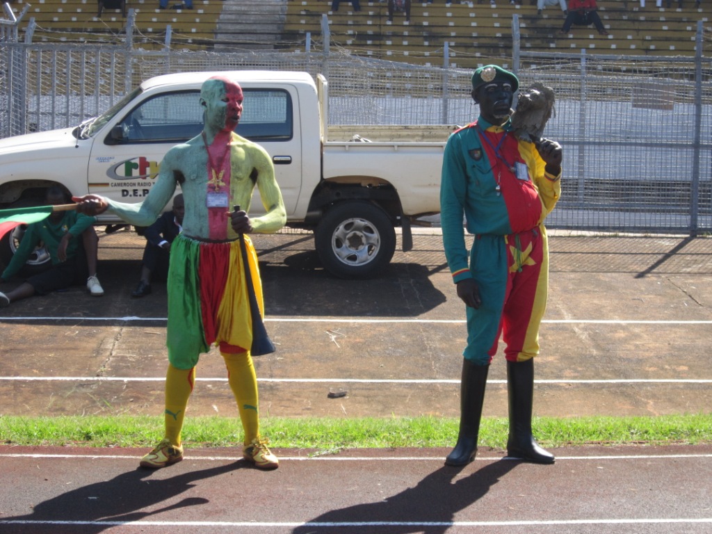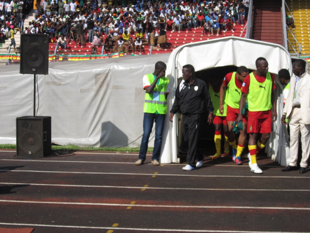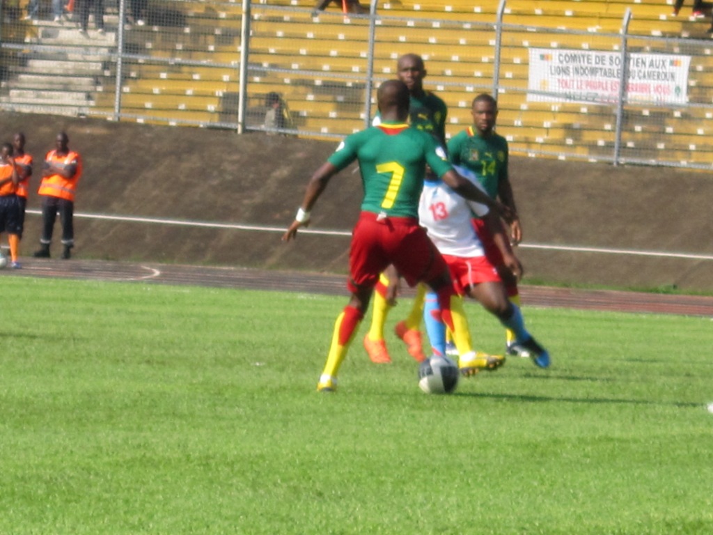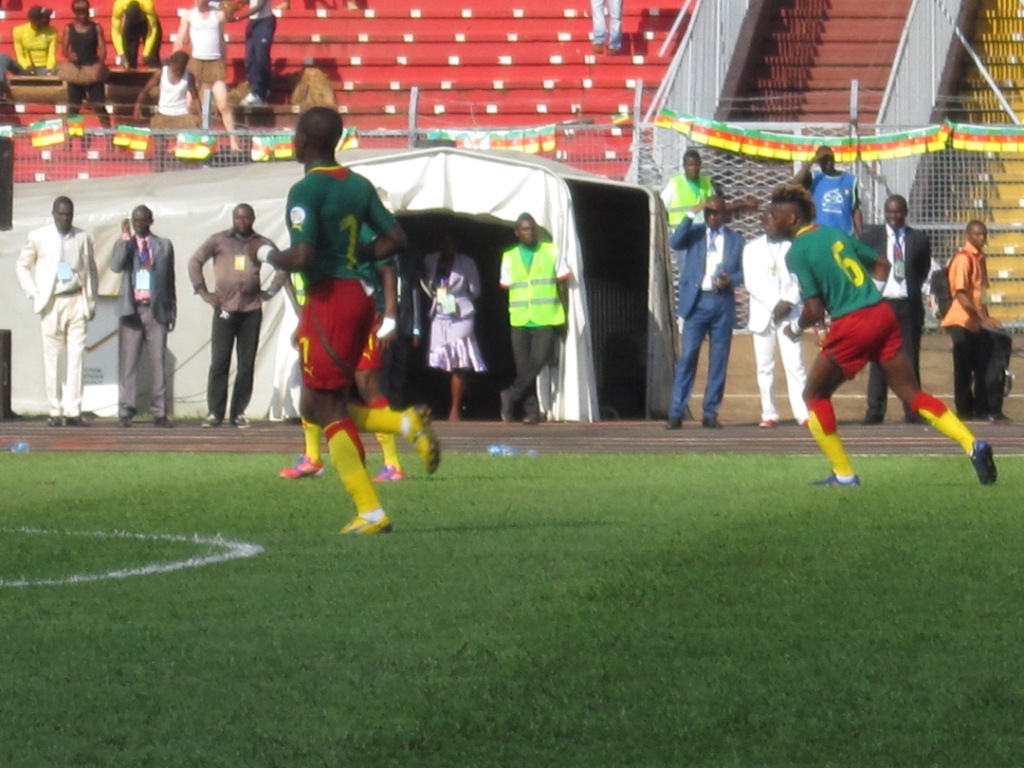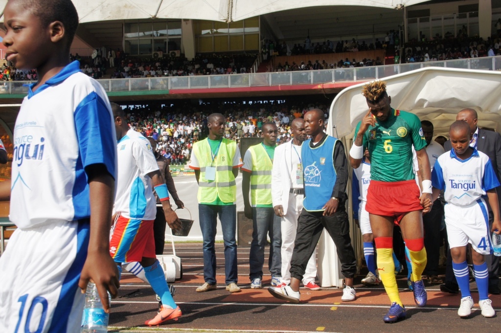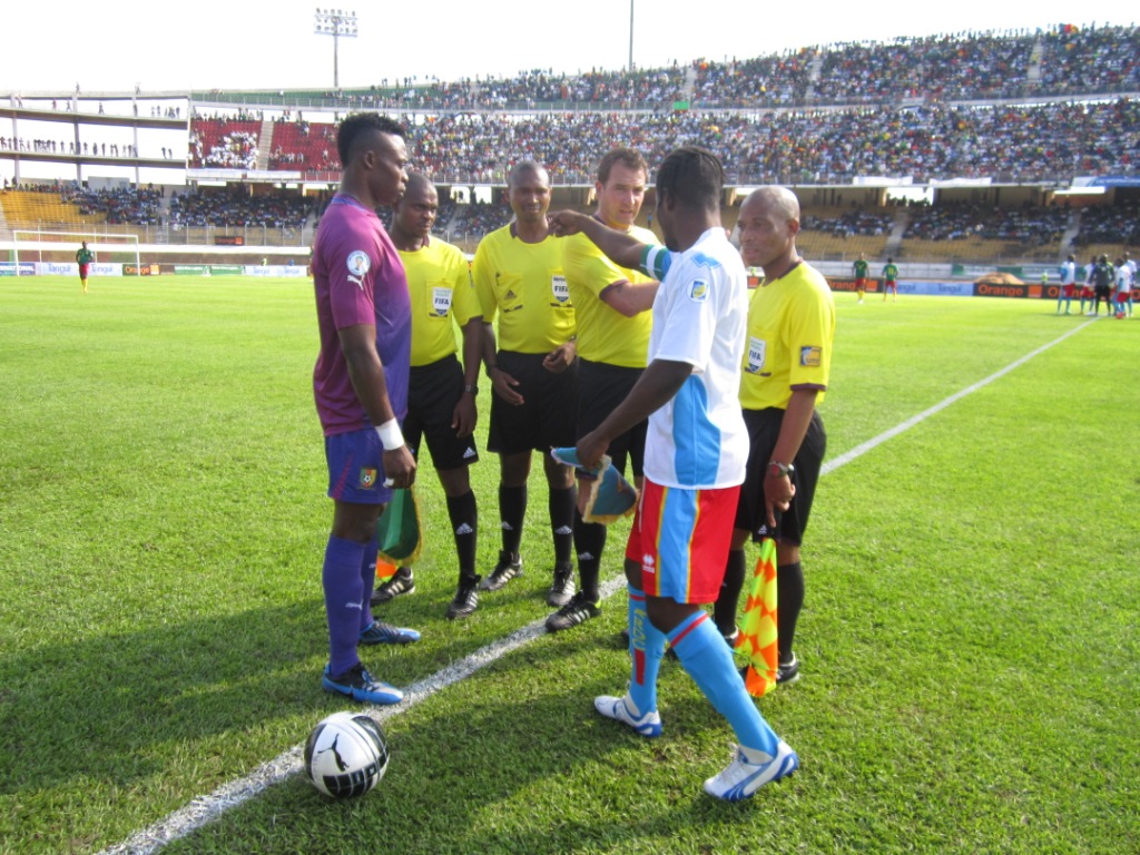 Le décor s’est définitivement planté au stade omnisports de Yaoundé. Les congolais sont habillés dans leur couleur traditionnelle, blanc-bleu-rouge. Les Lions Indomptables arborent leur accoutrement porte bonheur, le vert-rouge-jaune. Il faut noter que les deux sélectionneurs sont sortis ensemble, côte à côte, tous les deux habillés en noir.