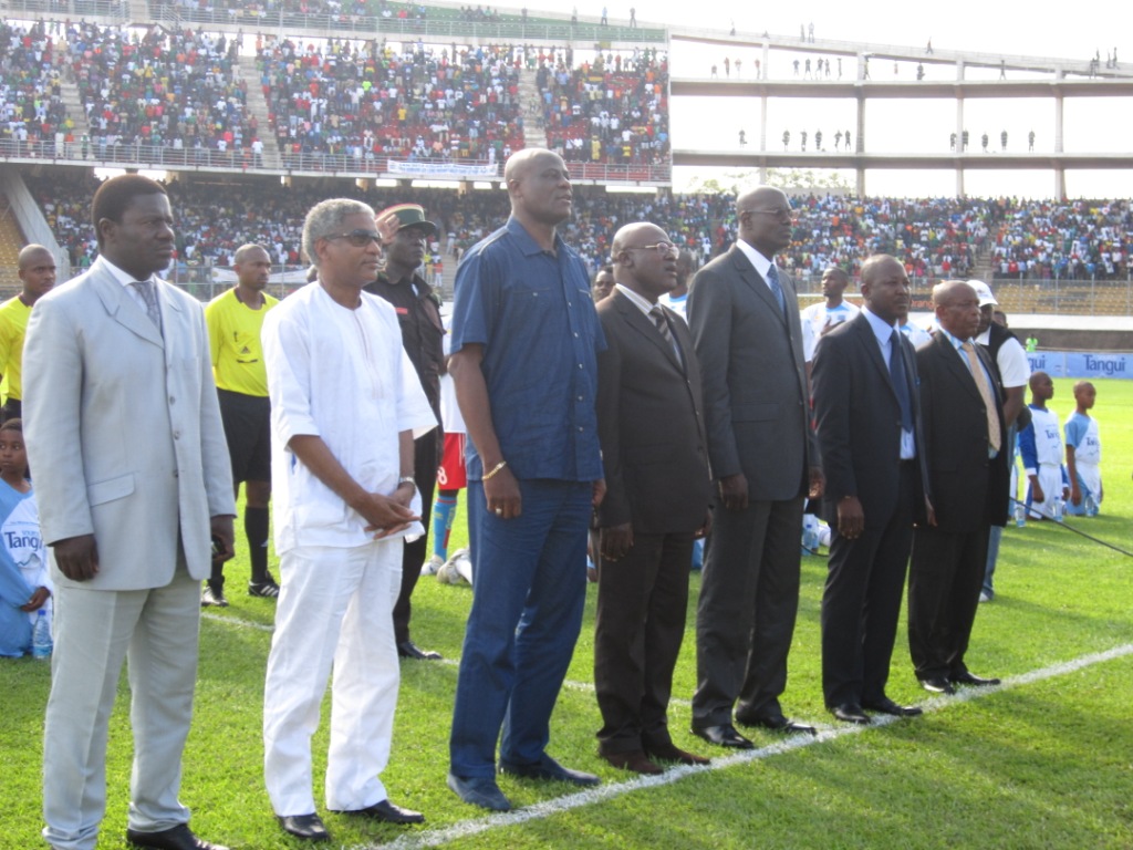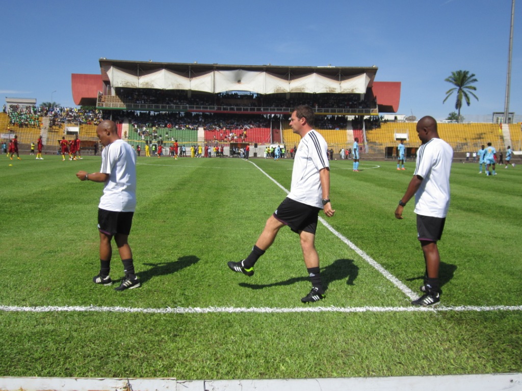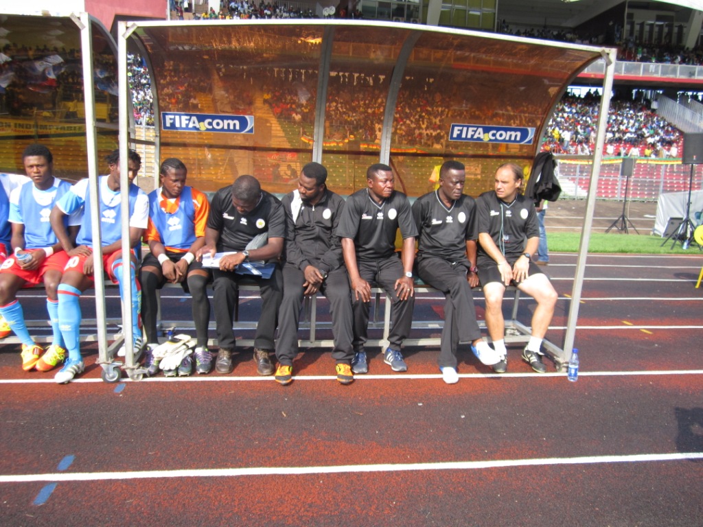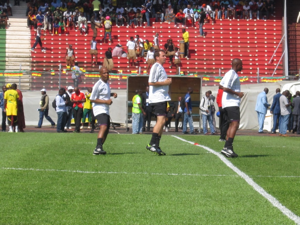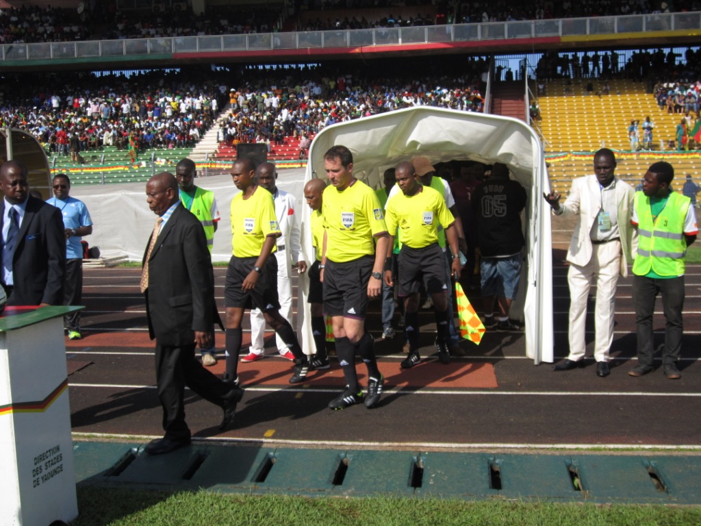 Le décor s’est définitivement planté au stade omnisports de Yaoundé. Les congolais sont habillés dans leur couleur traditionnelle, blanc-bleu-rouge. Les Lions Indomptables arborent leur accoutrement porte bonheur, le vert-rouge-jaune. Il faut noter que les deux sélectionneurs sont sortis ensemble, côte à côte, tous les deux habillés en noir.