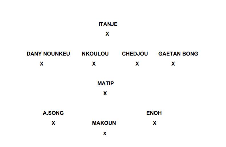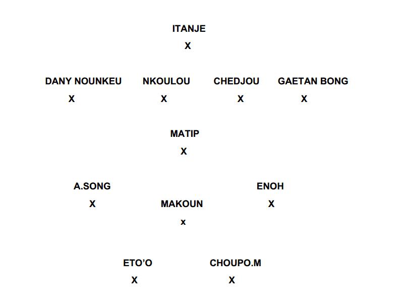 Le sélectionneur national Volker Finke vient de publier la liste des joueurs devant débuter le match contre la sélection libyenne. Le Capitaine des troupes tiendra son poste dans l’axe de l’attaque avec à ses côtés Maxim Choupo-Moting. Jean II Makoun animera le milieu de terrain en étant positionné juste derrière les attaquants. Le milieu de terrain sera completé par Alex Song, Eyong Enoh et Joel Matip.