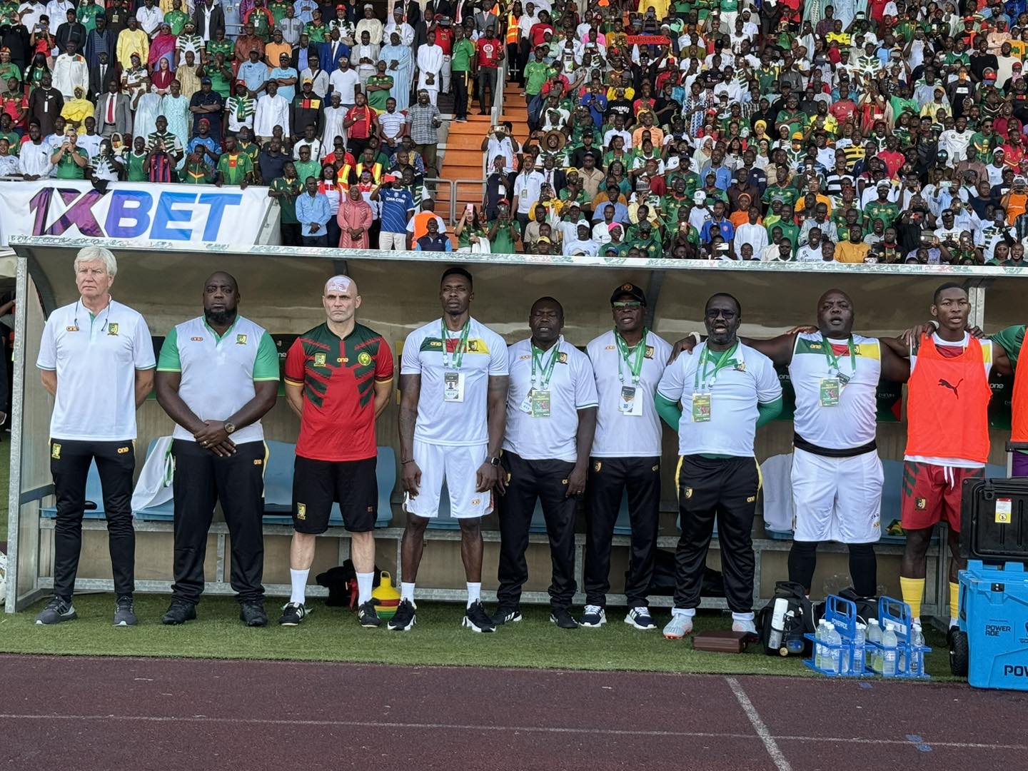 Martin Ndtoungou Mpile, David Pagou et Idriss Carlos Kameni avaient les noms sur la feuille de match. Mais, le nom de l’assistant de Marc Brys, Joachim Mununga, n’y était pas. Par conséquent, il n’avait pas qualité pour s’asseoir sur le banc de touche. Une absence qui n’a pas encore fait l’objet d’une communication officielle de la part de la Fécafoot jusqu’ici. Chacun y va de ses propres commentaires. Pourtant, c’est la paire (Brys -Mununga) qui prépare le match depuis le début du stage.