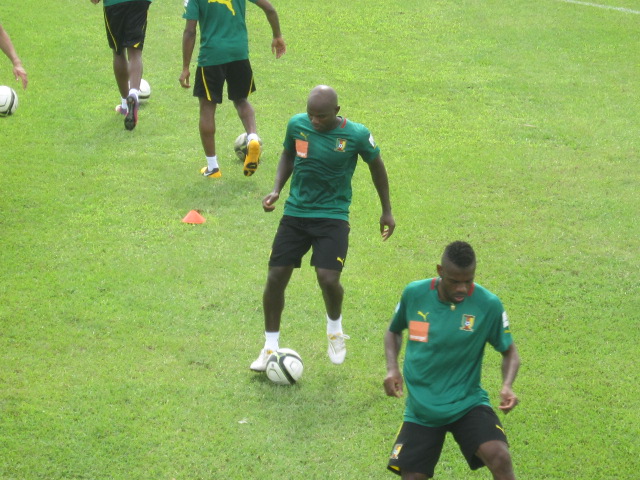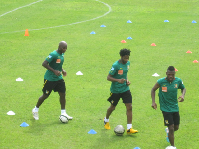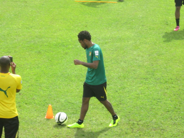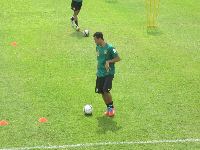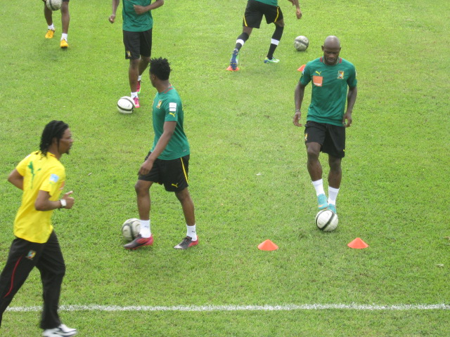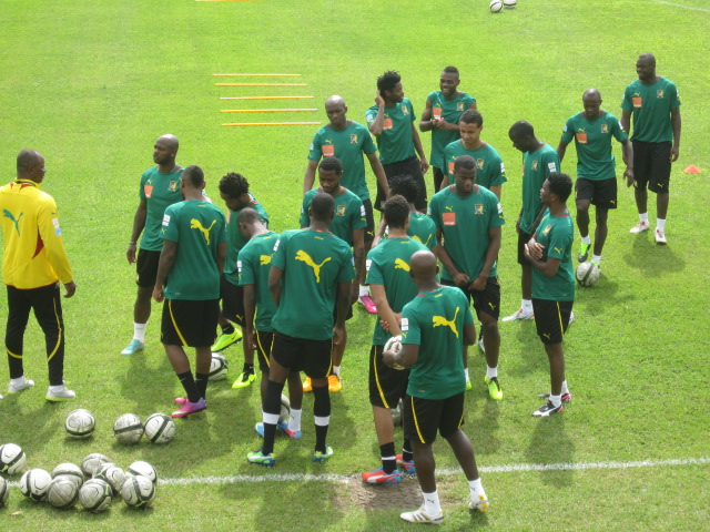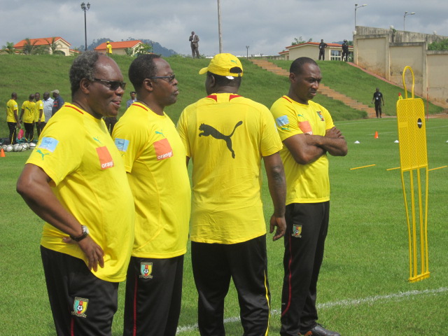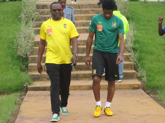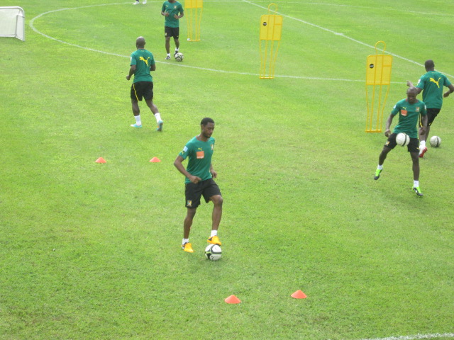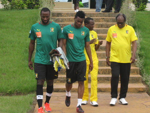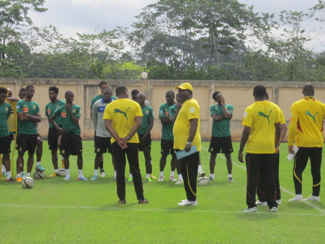Excepté Assou-Ekotto qui arrive demain, Aurélien Chedjou et Dani Nounkeu, tous deux blessés, les autres étaient tous présents. Sourire aux lèvres, et l’air visiblement décontractés, Samuel Eto’o et ses coéquipiers, rassemblés autour de leur encadrement technique, écoutaient attentivement les instructions de Jean Paul Akono. « Le travail que nous allons faire ce matin, est assez simple. Vous serez conduits durant cette séance par le coach Monkam », a-t-il expliqué à ses hommes.