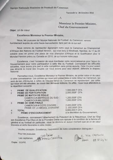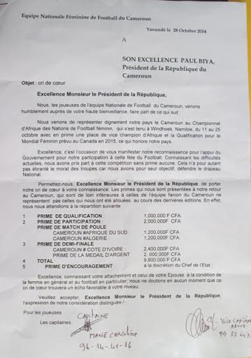 Camfoot a pu entrer en possession d’une copie de la lettre adressée au chef de l’Etat et au premier Ministre dont nous vous proposons la lecture.